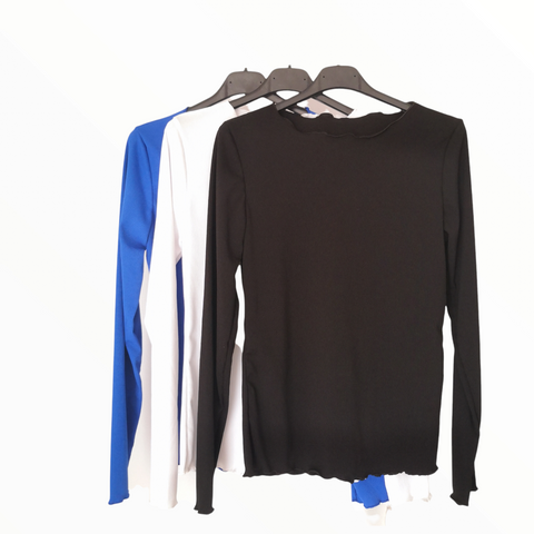 Camiseta básica de manga larga en canale. Es un tejido que da talla.
